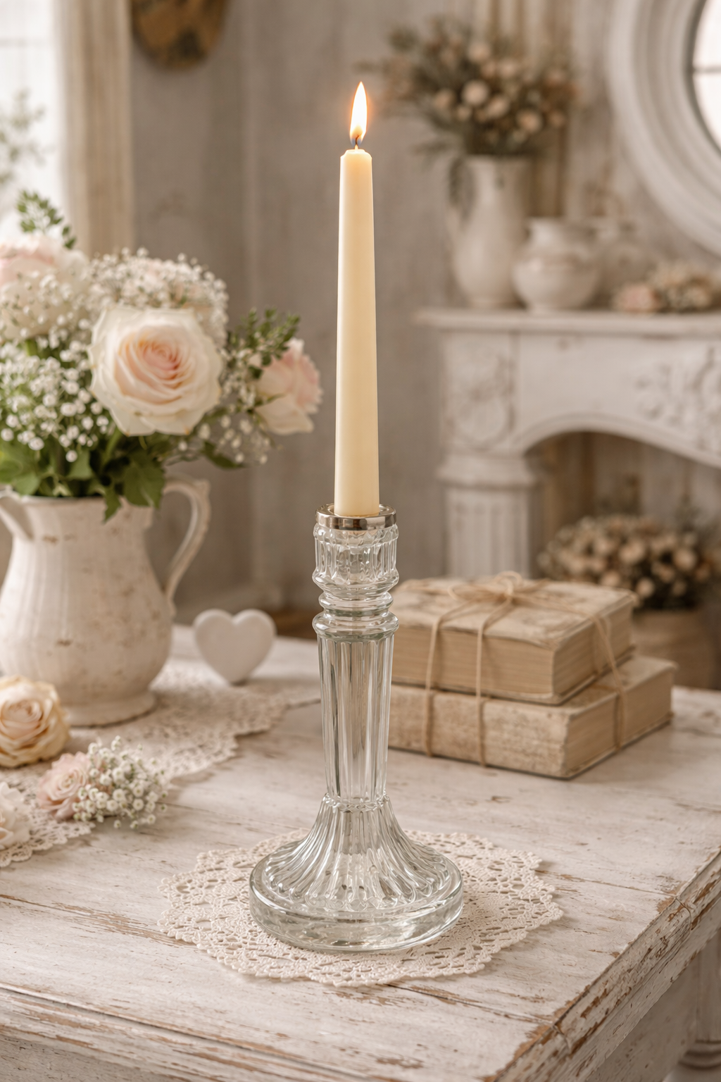 Portacandela Decorato Vetro Trasparente