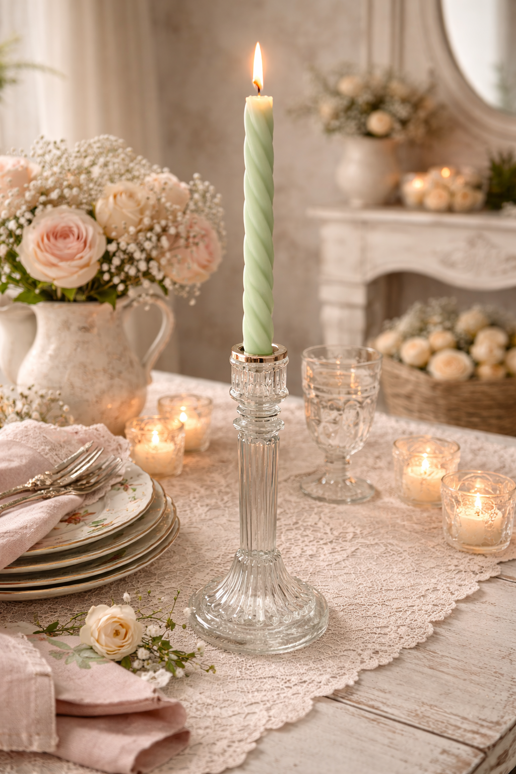 Portacandela Decorato Vetro Trasparente